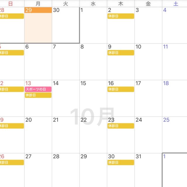 10月の休診日のお知らせ 2025年10月9日 お知らせ 本郷、藤が丘から通いやすい、名古屋市名東区の歯医者 みやちファミリー歯科 院長の宮地です。 10月の診療日 10月の診療日、休診日のお知らせです。 当院は木曜、日曜、祝日は休診日… 続きを読む